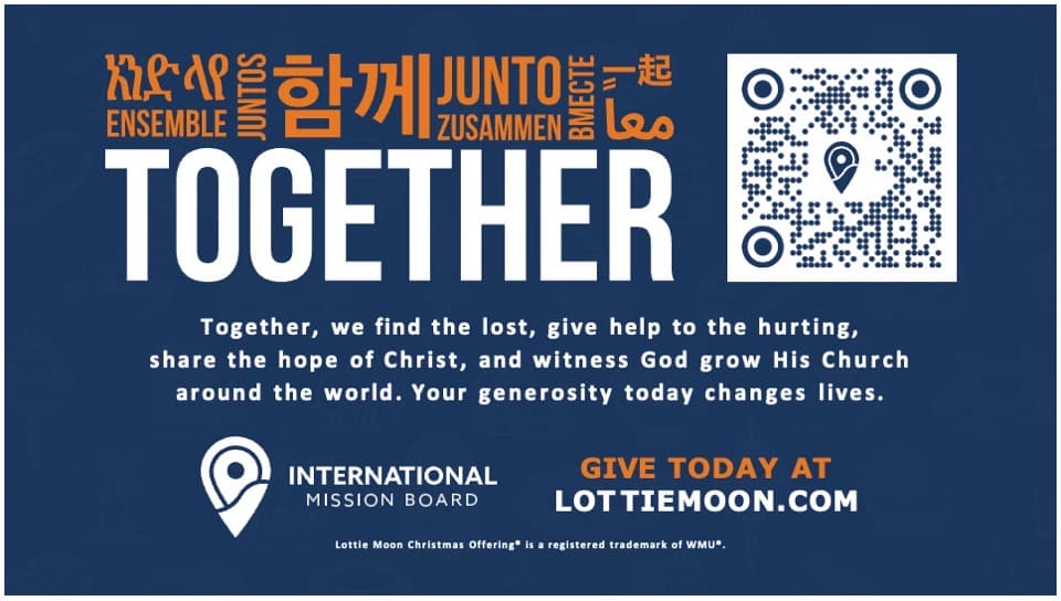 At Colonial Heights Baptist, we believe in the power of working together to reach the nations. Through the Lottie Moon Christmas Offering, we partner with the International Mission Board to find the lost, care for the hurting, and share the hope of Christ across the globe. Every gift directly supports missionaries who are planting churches, meeting needs, and taking the Gospel to places many of us may never go—but where God is already at work. Your generosity changes lives. Join us in giving and helping spread the light of Christ around the world.
